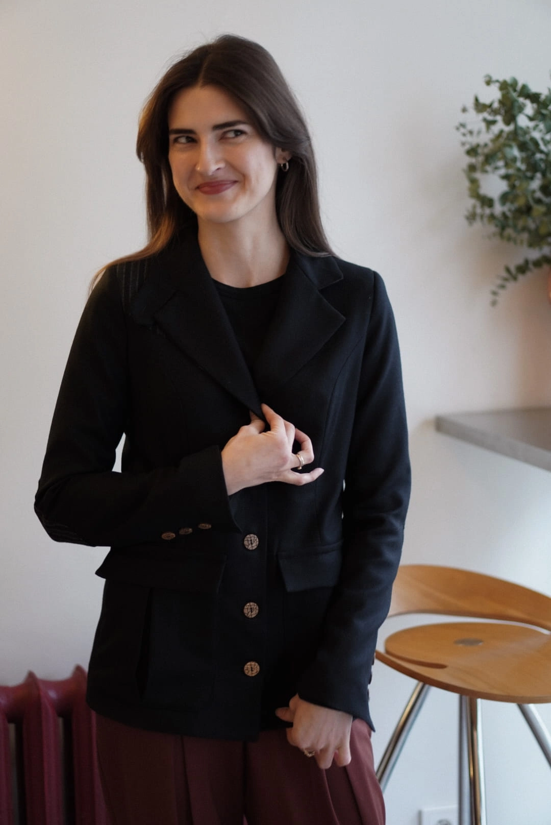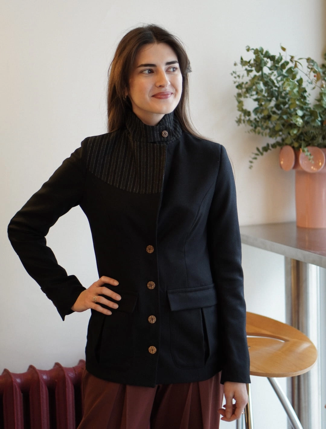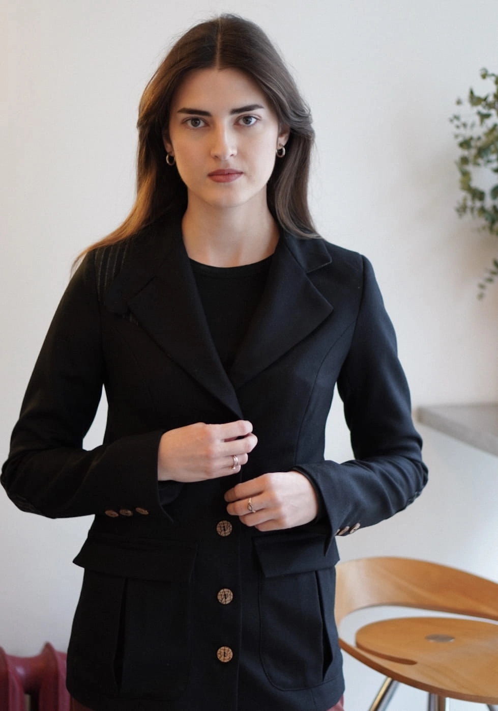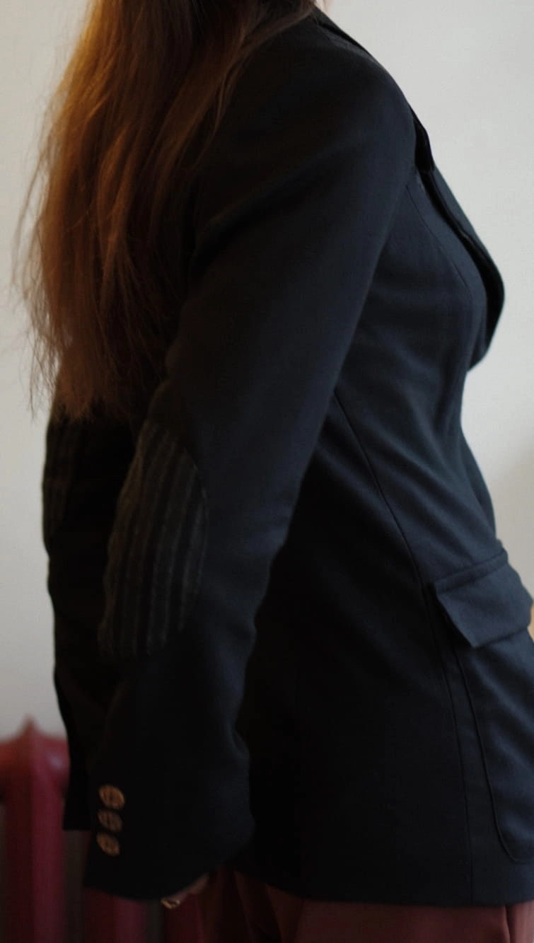Klasyk, który uzupełni Twoja szafę na wiele lat. Marynarka w stylu angielskim o delikatnie taliowanym fasonie. Pasujący spodni, spódniczek. Zapinany na guziki, kołnierz można postawić i zapiąć na guziczek w wietrzne dni. Wykonany z miękkiej wełny merino.